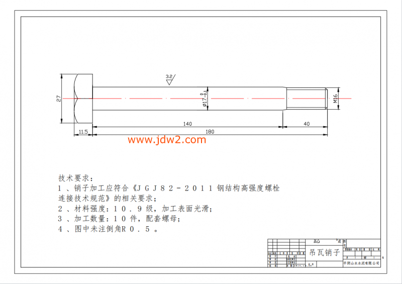 吊瓦销子,LS500 附图纸,带螺母、弹垫,规格φ17*180,硬度HRC39-44 10/件