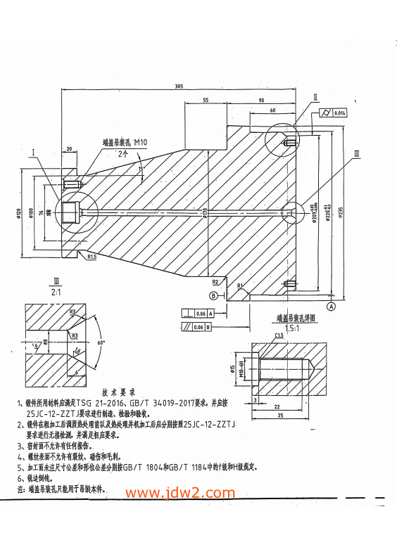 技术要求:见图加工,技术要求见附件,与端盖和压紧螺母配合制作;